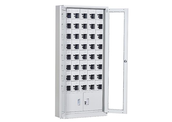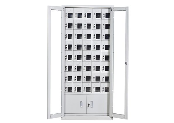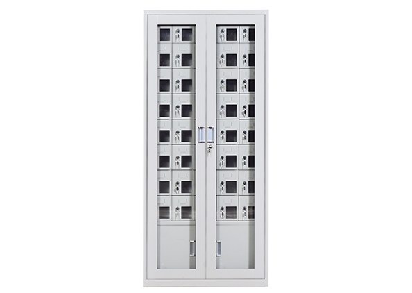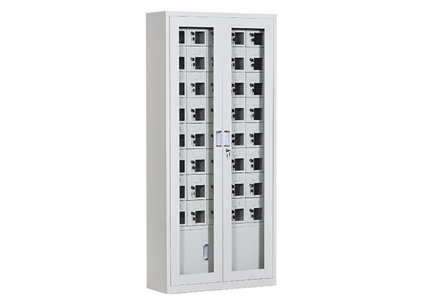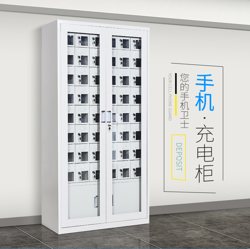 手機保密柜正面為對開金屬邊框玻璃大門,便于觀察柜內(nèi)情況,堅固透亮,美觀大方。